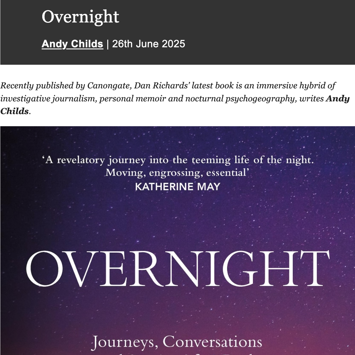 Corbridge event for the Overnight paperback